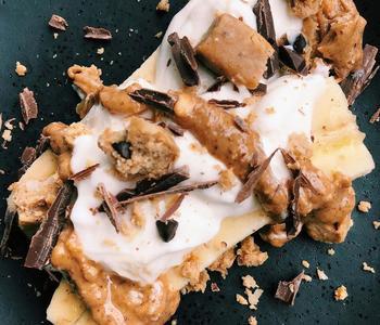 - Next add 1 tbsp of chocolate shavings, and finally top with 1/2 of a crumbled Peanut Butter Banana Chocolate G2G Bar.
